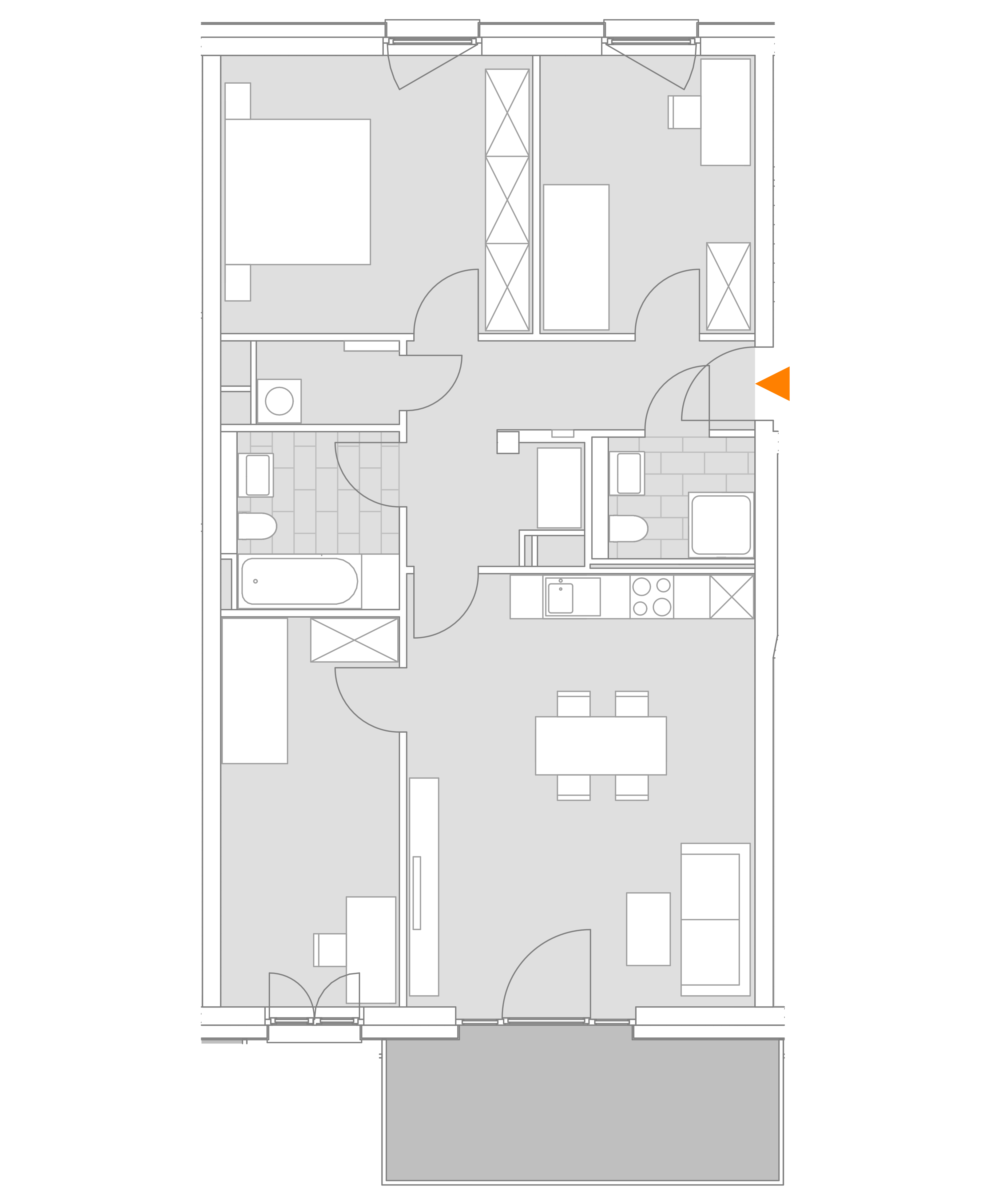 In jedem Gebäude steht den Bewohnern ein Aufzug zur Verfügung, mit dem sie alle Etagen von der Tiefgarage bis zum Obergeschoss bequem erreichen können. Der helle Parkettboden, egal ob im Wohn-, Ess- oder Schlafzimmer, schafft in der gesamten Wohnung ein gemütliches Ambiente mit optimalem Raumklima, das zum Wohlfühlen einlädt. Große bodentiefe Fenster ermöglichen nicht nur einen schönen Blick nach draußen, sondern auch eine natürliche Belichtung in allen Räumen. Jede Wohnung verfügt über einen eigenen Balkon oder eine Terrasse – der ideale Ort für Entspannung im Freien.